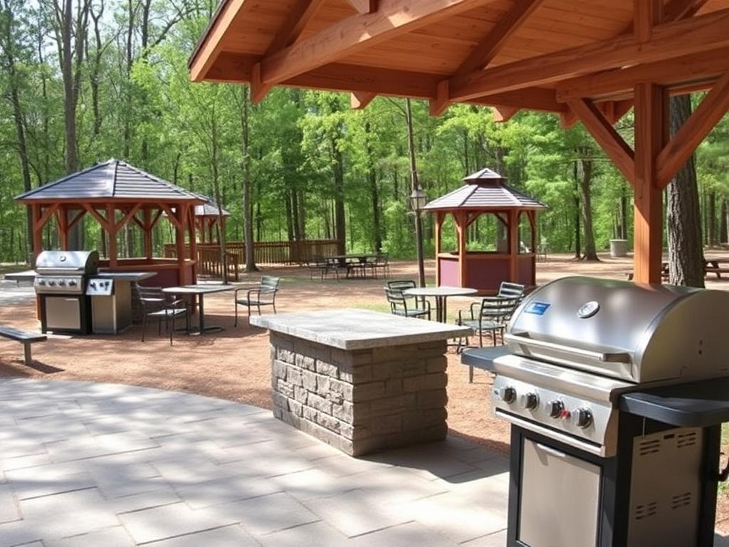 Безопасность на первом месте: держите поблизости огнетушитель, увлажнённую тряпку и щётку для чистки. Не ставьте барбекю возле горючих материалов и не перегружайте крышку без нужды — это может привести к излишнему скоплению жара. Эстетика тоже важна: держите подчистую поверхность вокруг барбекю, выбирайте устойчивые столешницы и защитные экраны, которые вписываются в стиль беседки и других элементов зоны отдыха.